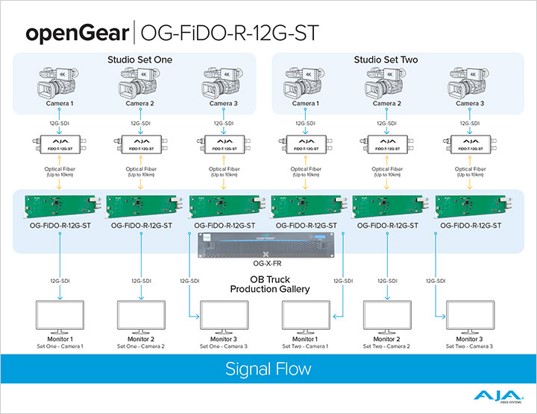 AJA openGear OG-FiDO products are designed for use in high density openGear 2RU frames including AJA’s OG-X-FR frame, with industry standard DashBoard software support on Windows®, macOS® and Linux®, offering remote control and monitoring over a PC or local network