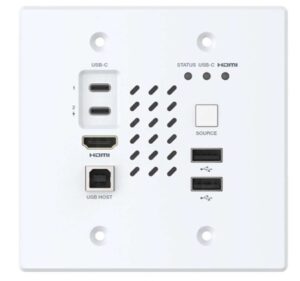 The Chazy 4K Wallplate Tx is a Dante AV-A and JPEG 2000 encoder, allowing seamless transmission of 2160 60Hz 4:4:4 HDR video from laptops or tablets via USB-C, and from video sources via the HDMI 2.0b input. Fitting into a 2-gang Decora-style wallplate, it’s perfect for modern boardrooms, lecterns, and meeting spaces. The Dante AV-A license is included and ready to go, which also has 2×2 Dante audio license. Chazy 4K Wallplate Tx is PoE powered and supports a wide range of audio formats including 7.1 Dolby Atomos, and features advanced capabilities like KVM, video wall configurations up to 9×9, hardware scaling, EDID management, HDCP 2.2, and true multicast support. TAA compliant,