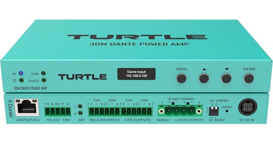 This compact amp acts as a full Dante audio bridge and powers two passive speakers at 15 watts per channel. Convert axnalog to Dante, Dante to analog, or do both at once.